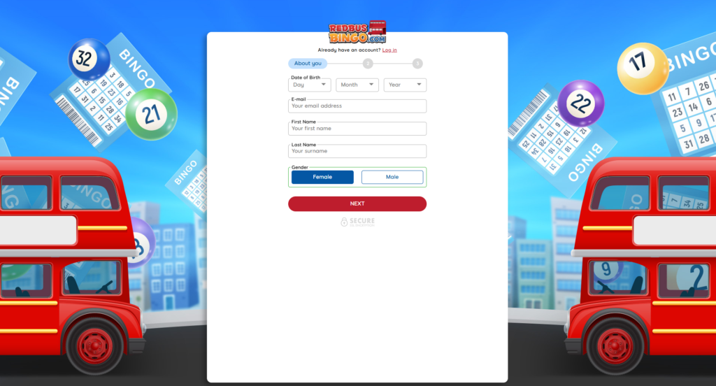 When you sign up to play at Red Bus Bingo, you will be required to provide a range of information such as your name, date of birth, address, email, telephone number and gender.