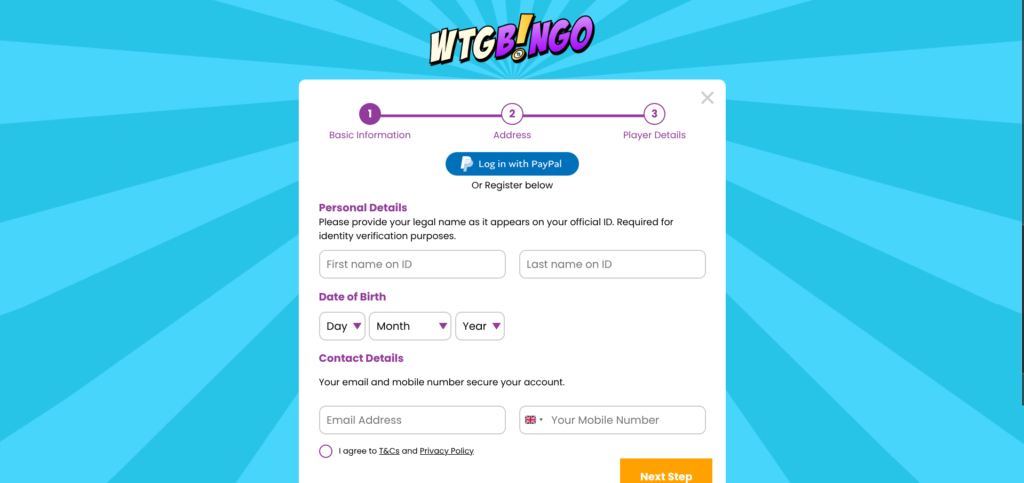 WTG Bingo Registration