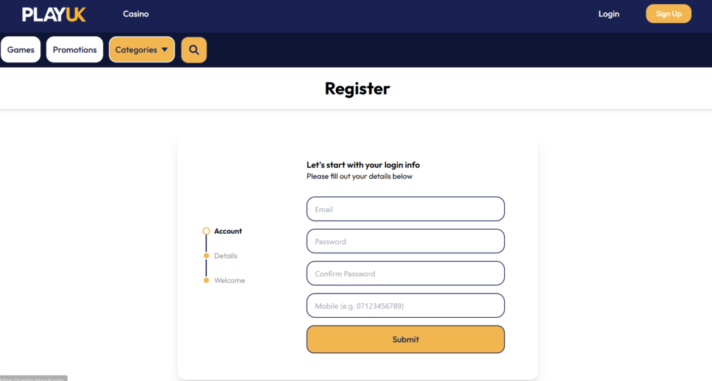 PlayUK Casino Registration
