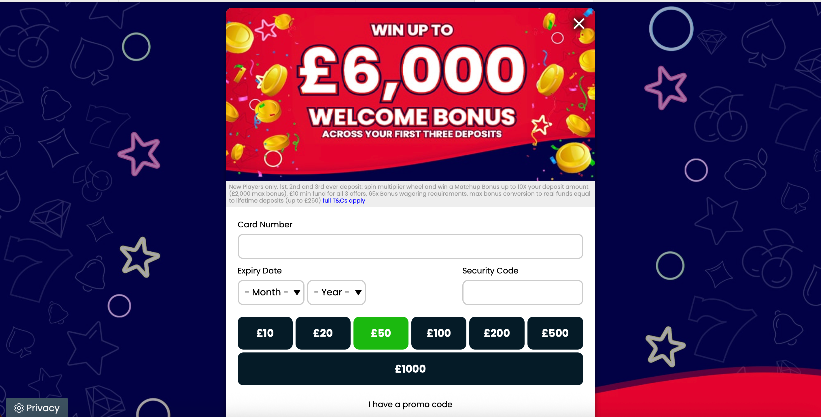 - 1st Deposit: Spin to Win Up to £6,000 Welcome Bonus