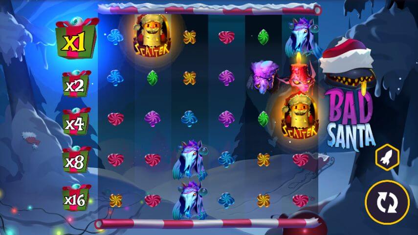 Not everybody is good for Christmas! Go over to the festive dark side playing Bad Santa slot game! This Peter & Sons slot is packed with bonus features including scatter pays, cascades, free spins, unlimited multipliers, and a multiplier jump feature!