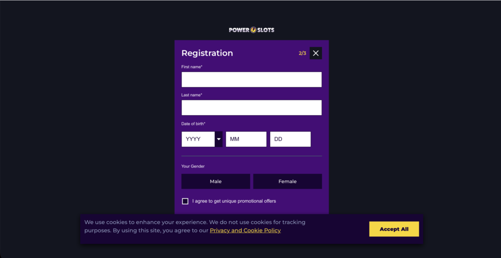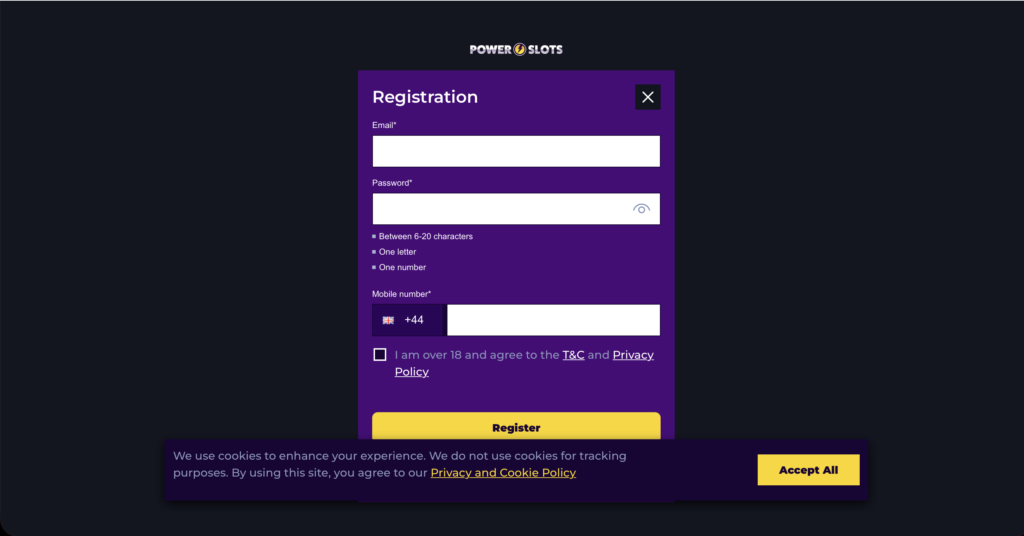 It’s a straightforward process for new players to sign up for an account at Power Slots Casino.