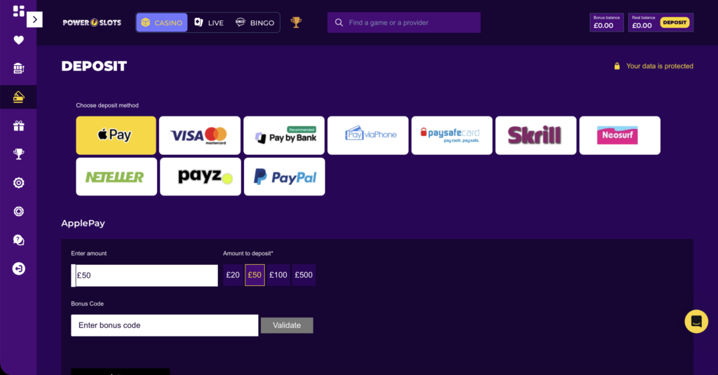 Payment Options at Power Slots Casino